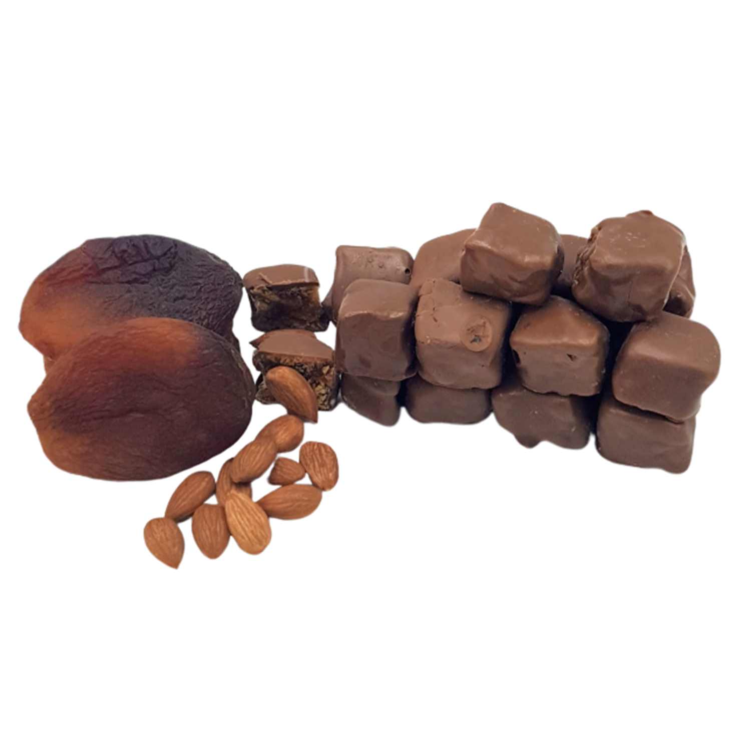 Gün Kurusu Kayısı ve Kayısı Çekirdeğini harmanlayıp lokuma dönüştürüyoruz. Üstünü Yüzde 100 Belçika Çikolatası ile kaplıyoruz. Ve işte karşınızda tarifsiz lezzet: Çikolatalı Kayısı Lokumu.
