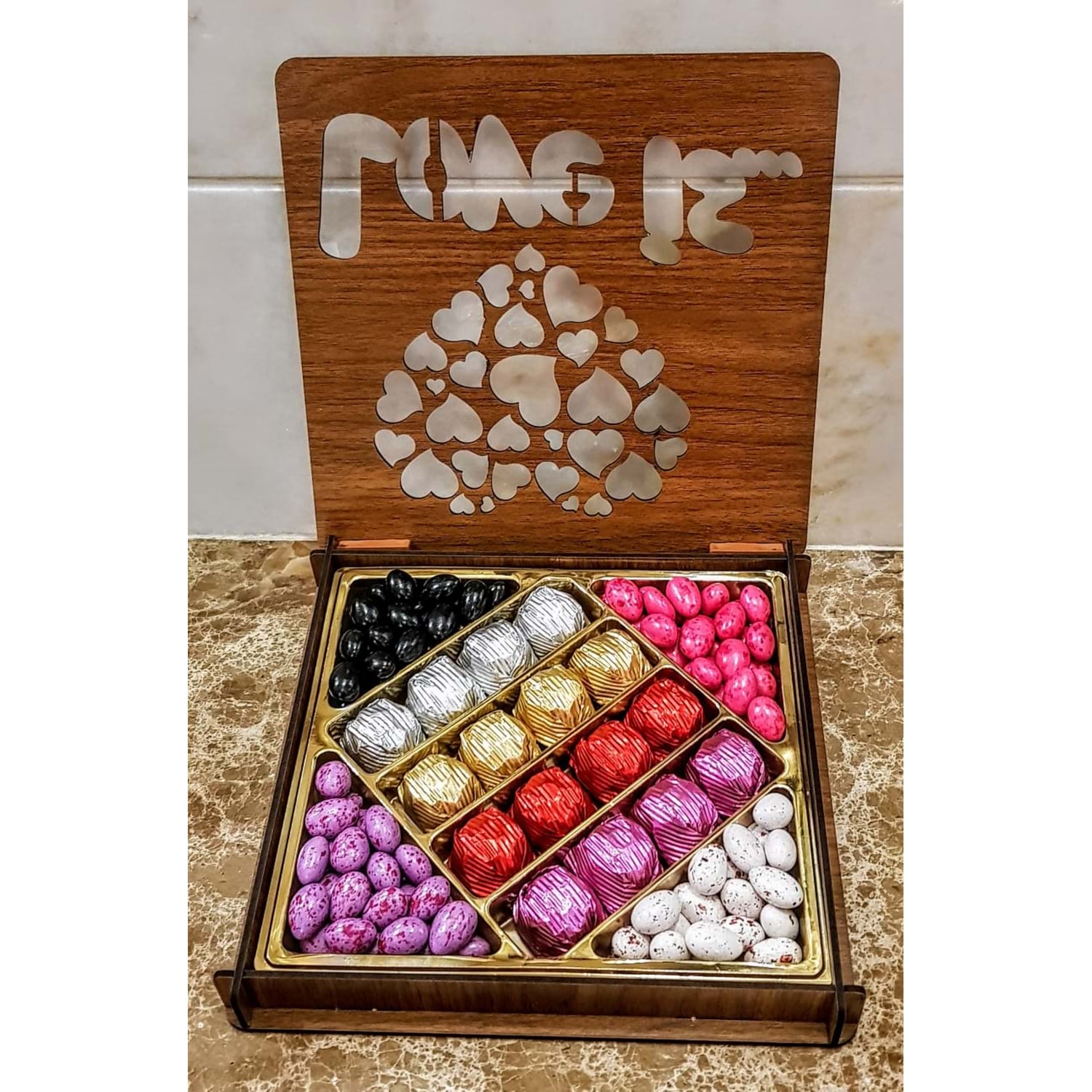 İçi Enfes Çikolatalarımız ve Benzersiz Şekirdek Lezzetleriyle Dolu "Love" Temalı Ahşap Hediyelik Kutu.