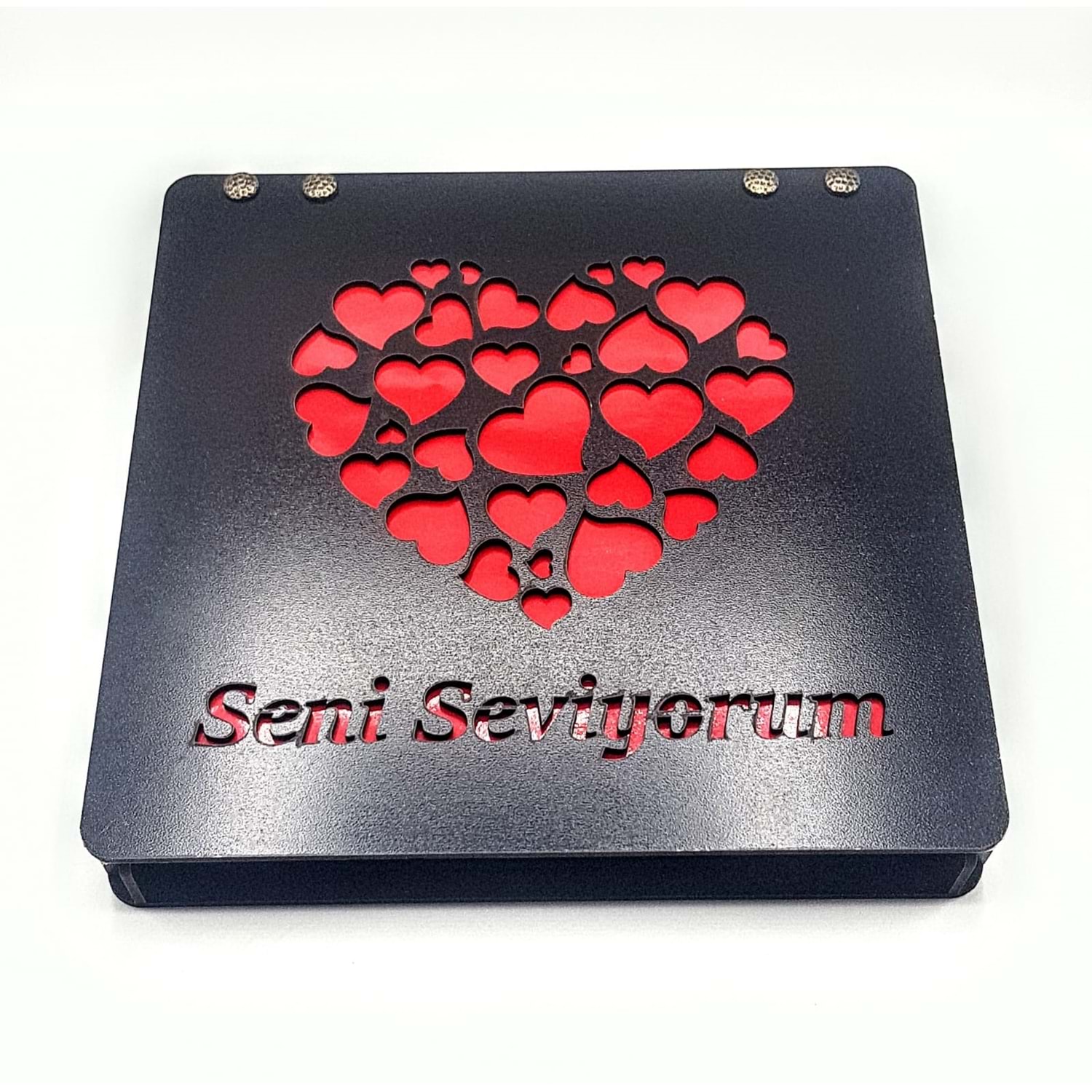 İçi Enfes Belçika Çikolatası ve Şekirdek Lezzetleriyle Dolu, Kapağında Kalp ve Seni Seviyorum Yazısı Bulunan Harikulade Hediyelik.