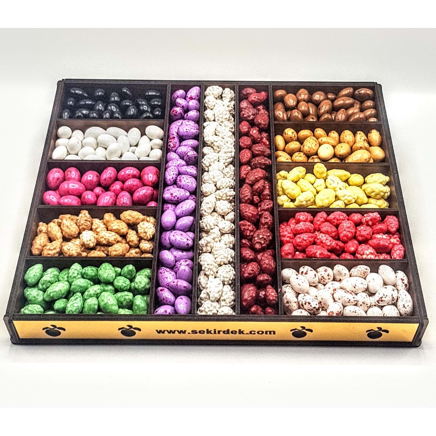 13 Bölmeden Oluşan Özel Tasarım Harikulade Paketimiz Ahşaptan Üretilmiştir. Gold Giydirmelerle Şıklığı Arttırılan Paketimiz Birbirinden Lezzetli Şekirdek Lezzetleriyle Doludur.